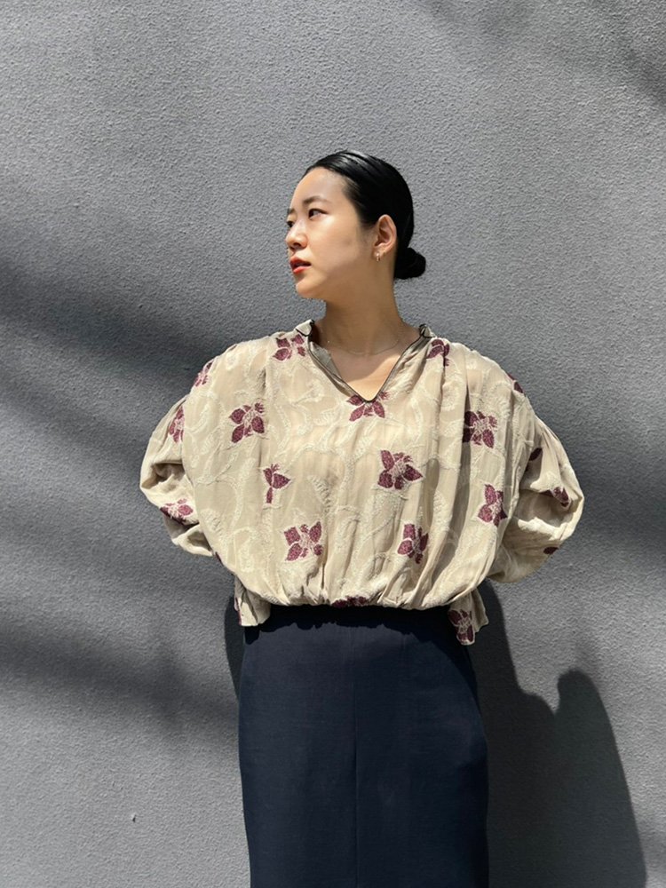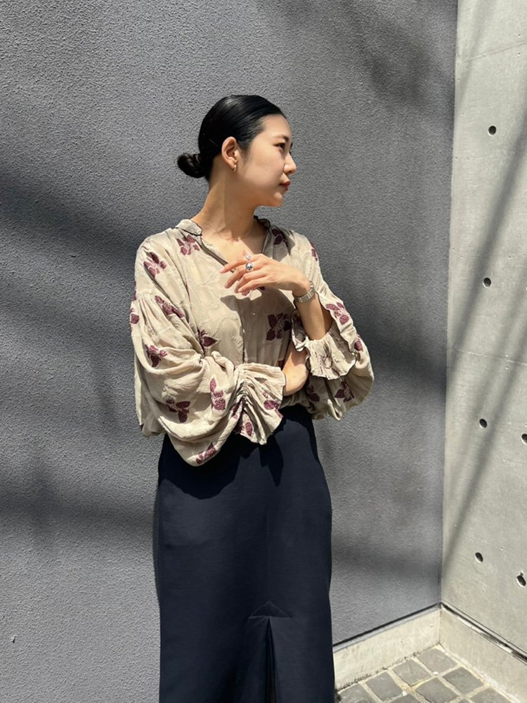 Cut Jacquard Gather Blouse