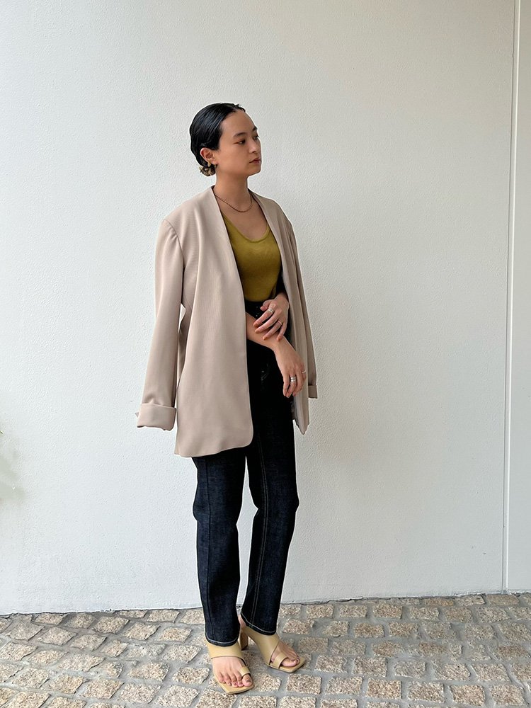 Collarless Twill Jacket