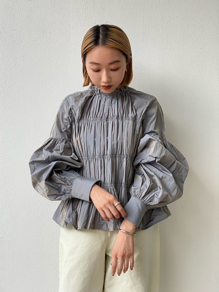 Chambray Shirring Blouse