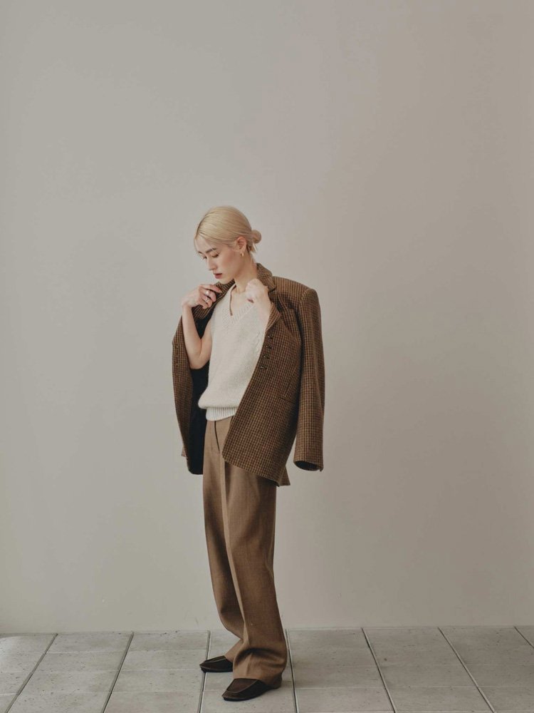 Wool100% Check Jacket