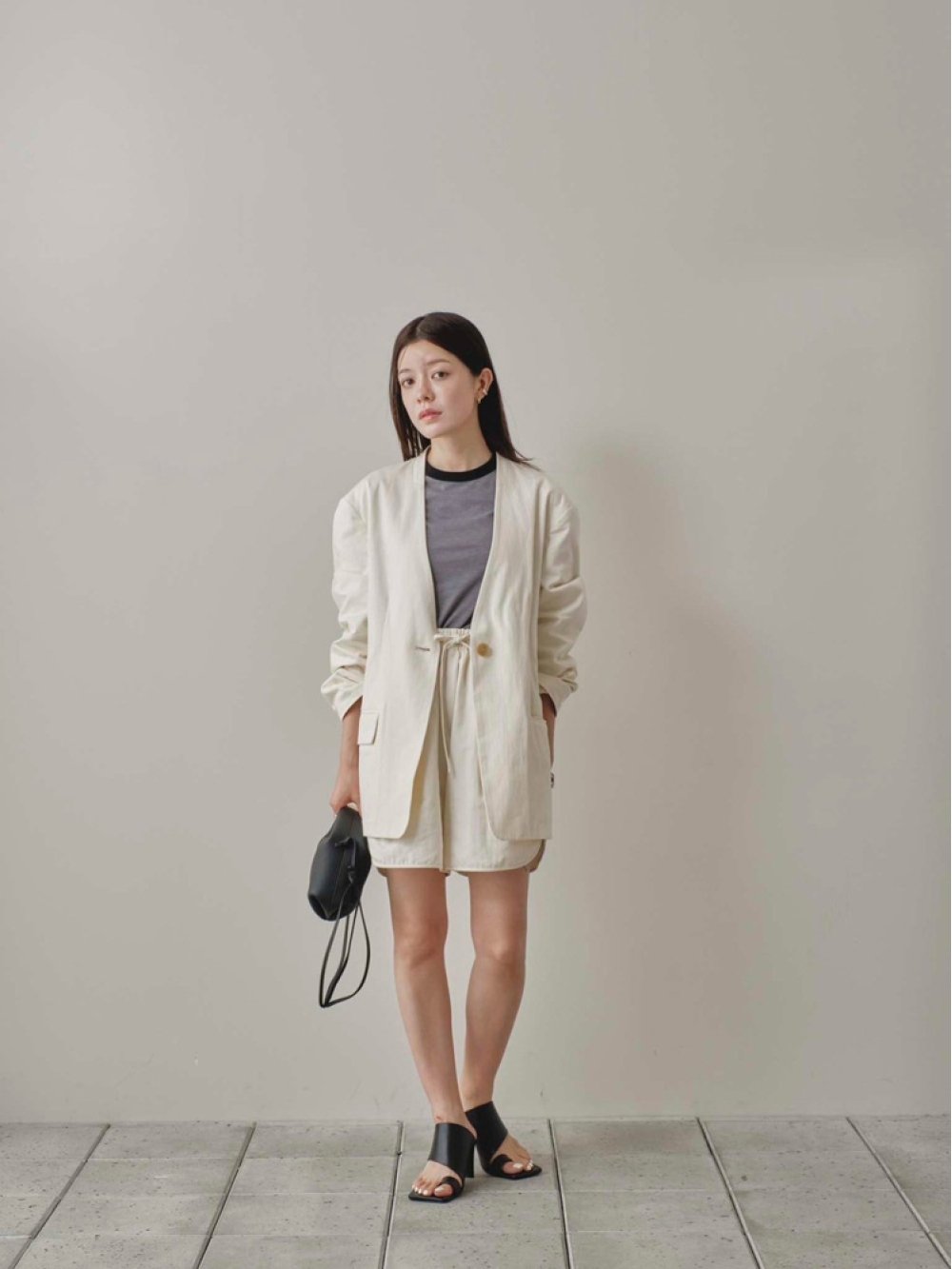 Collarless Cottonsatin Jacket