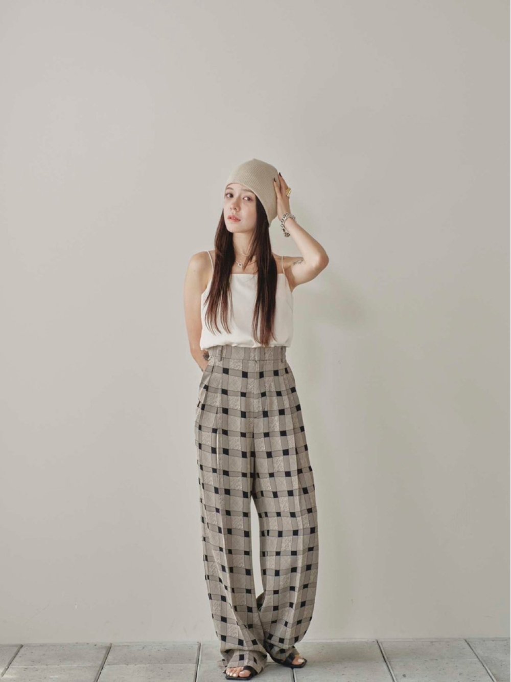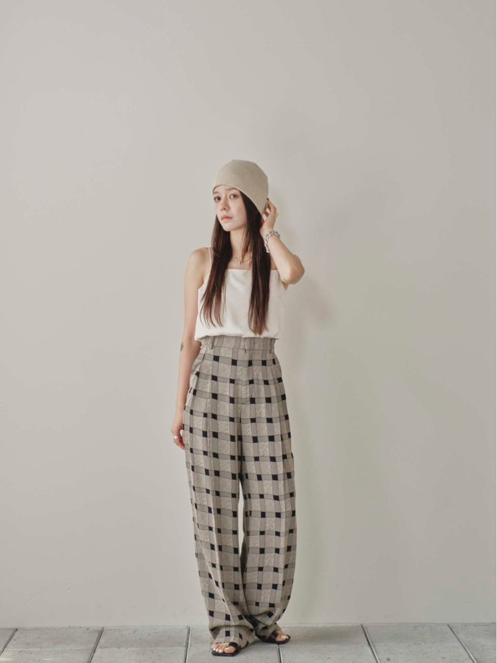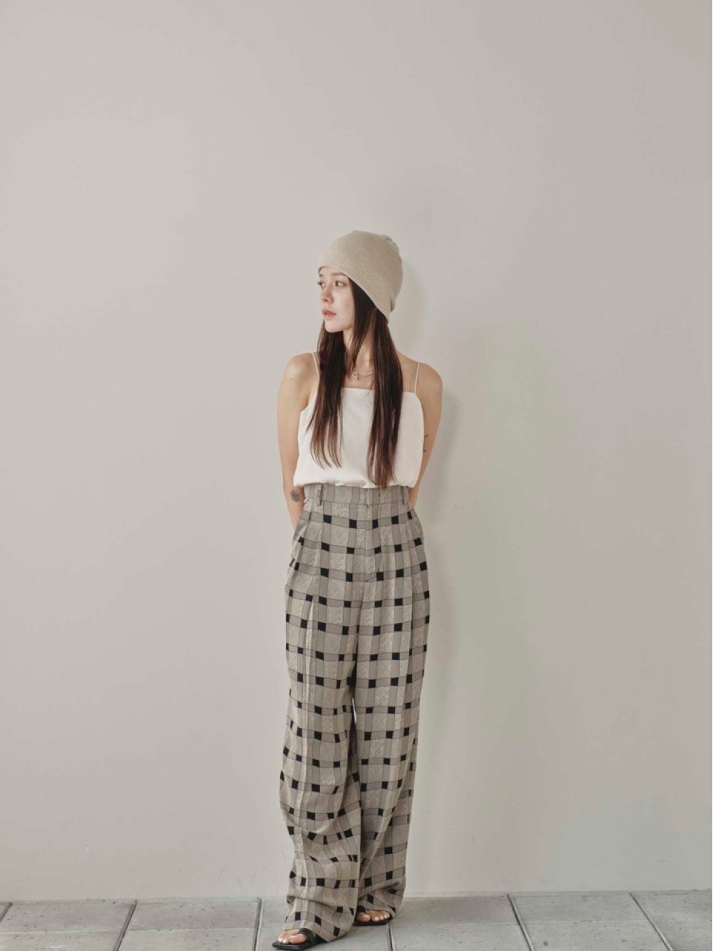 Checkjacquard Tuck Trousers
