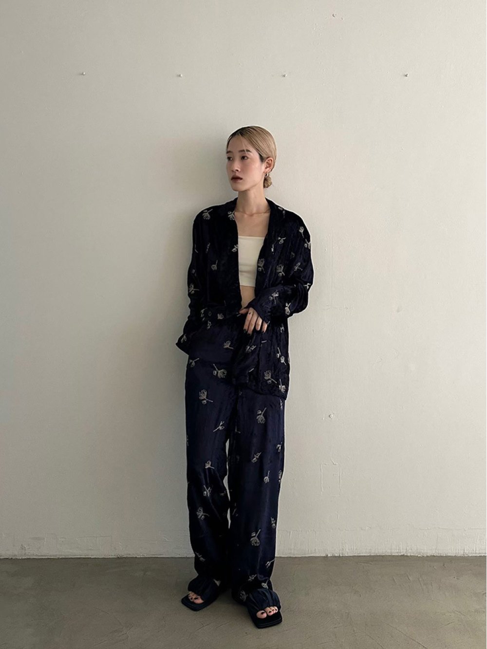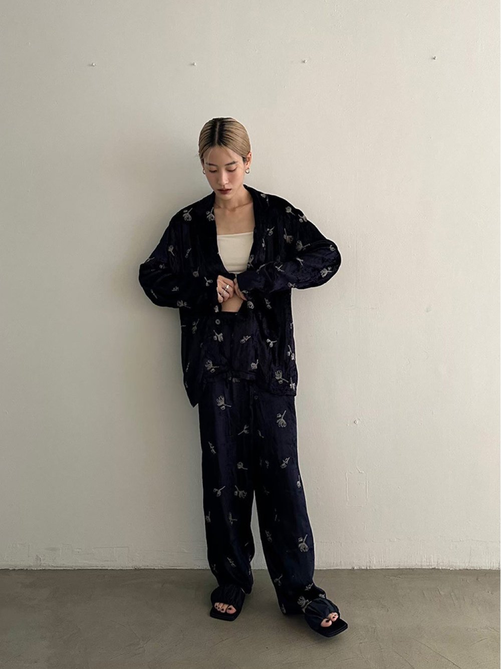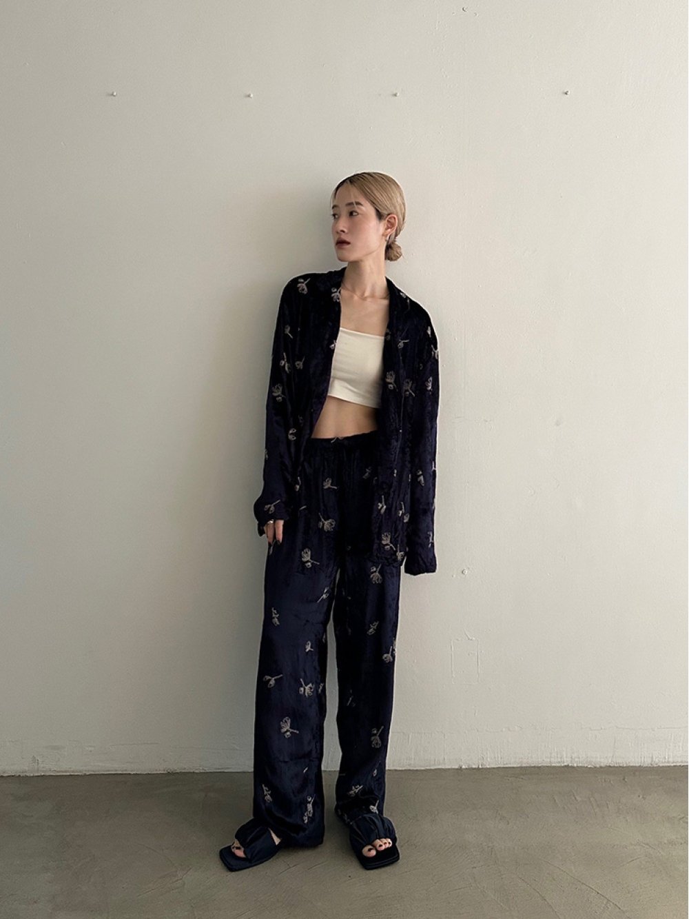 Embroidery Velour Pants