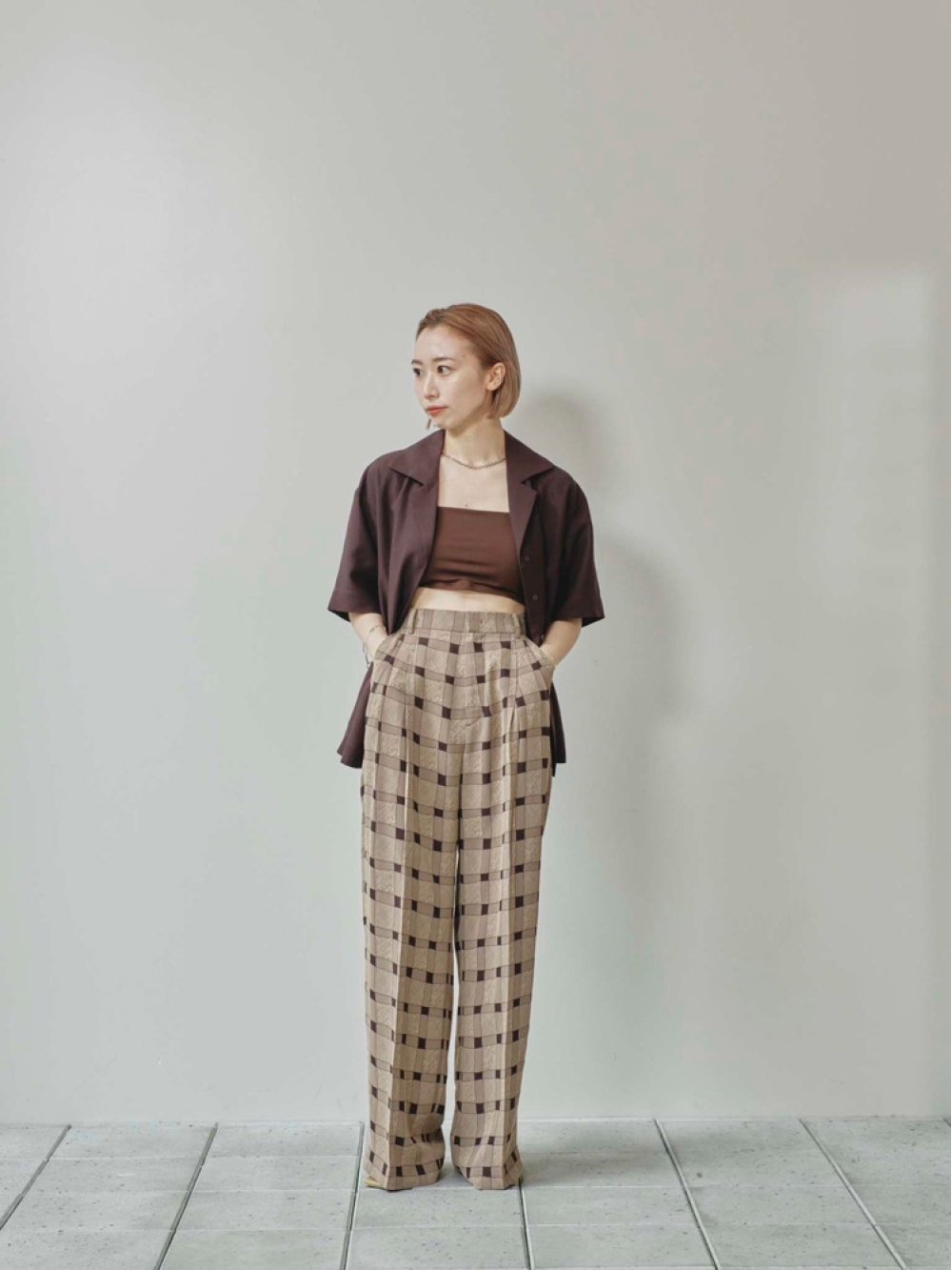 Checkjacquard Tuck Trousers