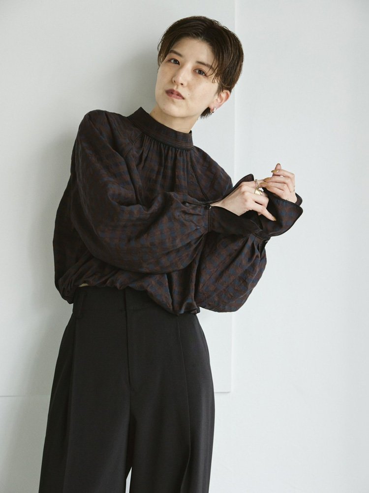Ginghamcheck Puff Blouse