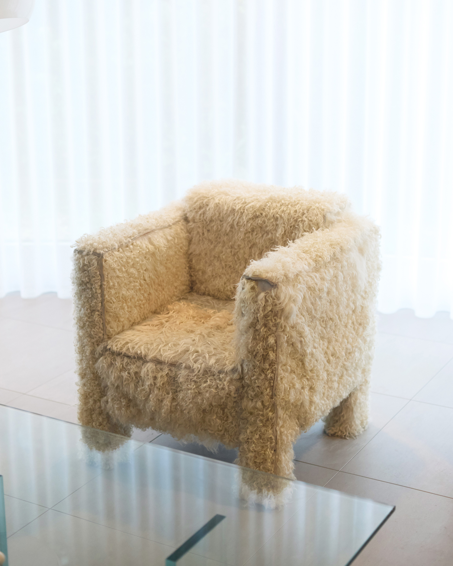 1990年代の希少な一脚。PIET HEIN EEKで出会いました。山羊の毛足のクルッとした毛並みと、どこか愛嬌のあるフォルムがお気に入り。テレビを見る時など、リラックスしたい時に自然と座りたくなります。