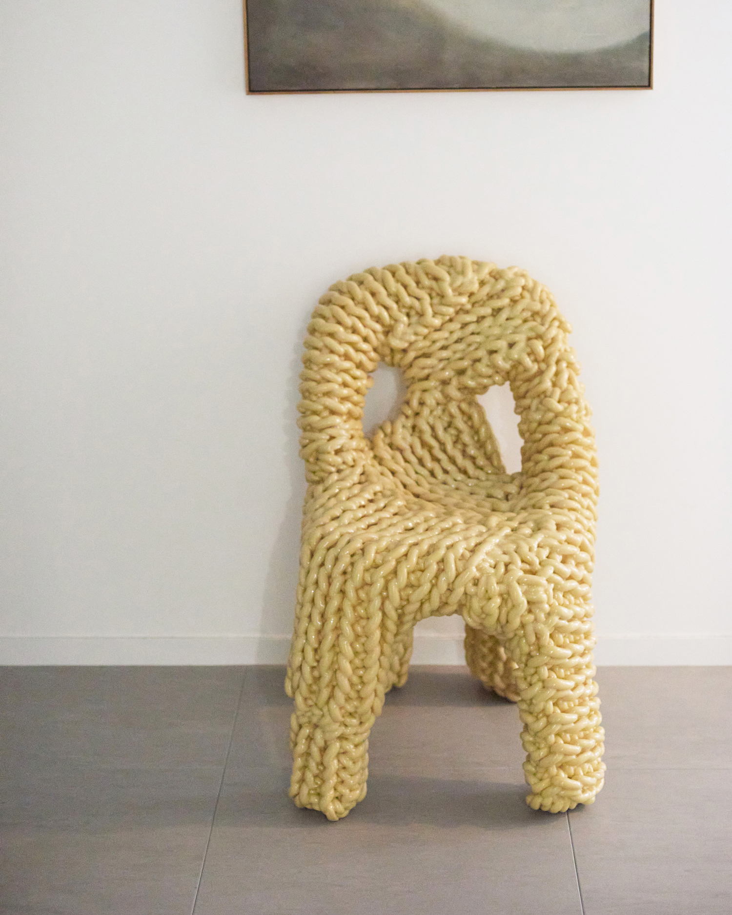 SKAC(SKWAT KAMEARI ART CENTRE)で購入。日常使いというより、空間のアクセントになるアートピースとして迎えました。今日着ているニットの編地みたいな表情が印象的で、ファッションの延長のような感覚で惹かれて即決。今は通路にオブジェとして置いてますが、いつかリビングで座る日も楽しみです。