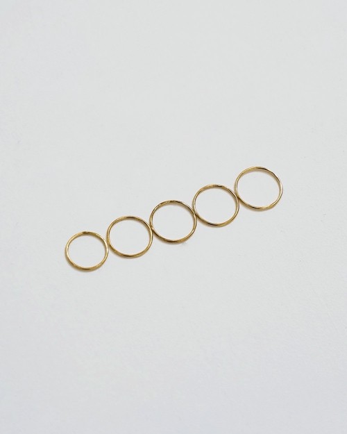 1mm幅のリングはミニマルなデザインに惹かれる5本セット。一つ一つ手作業でニュアンスをつけることでさりげないアクセントを与え、手元をきれいに見せてくれます。 4サイズ展開なので、同じ指に重ね付けや、お手持ちのリングとのレイヤードもおすすめ。Silver925素材のため、独自のくすみなど経年変化を楽しんでいただけます。