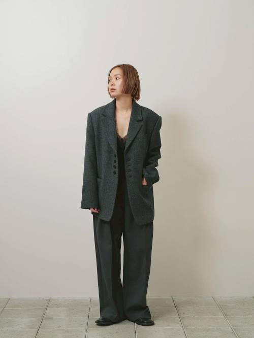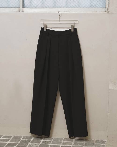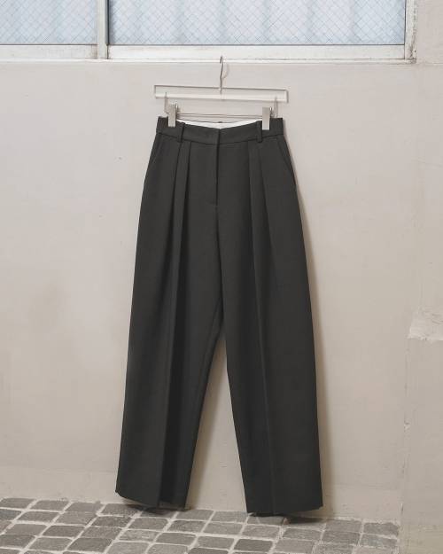 深めのダブルタックとワイドなシルエットが魅力のトラウザーズ。上質なツイル生地を使用し、内側に別生地をボンディング加工することで、シルエットをより立体的に見せてくれます。表地と同色のパイピングを挟んだオリジナルマーベルトとステッチを表に出さない仕立てがマニッシュでありながらも、どこか上品な印象に。