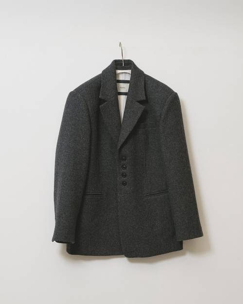 ウール100%の生地を使用したジャケット。中央に寄せたボタンがアクセントとなり、オーバーショルダーのシルエットが上質でマニッシュなムードを演出。シンプルなスタイリングに取り入れるだけでこなれた印象に。Wool100% Check Jacket と同型です。