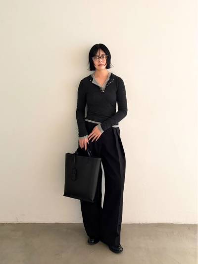 牛床革(本来捨てられる革をリメイクし、合成皮革と組み合わせた物。合成皮革よりは革の持つ素材感を生み出すことが出来、経年変化を楽しんで頂けます。)を使用した滑らかな質感が魅力のバッグ。同じ素材で仕立てた鍵などを付けられるチャームやボックスシルエットのボディが目を惹くアイテム。ショルダーストラップ付きで、肩掛けでも手持ちでも使える2way仕様。A4サイズも収容可能なサイズ感で、デイリーからオケージョンまで幅広いシーンに馴染みます。