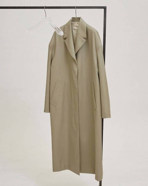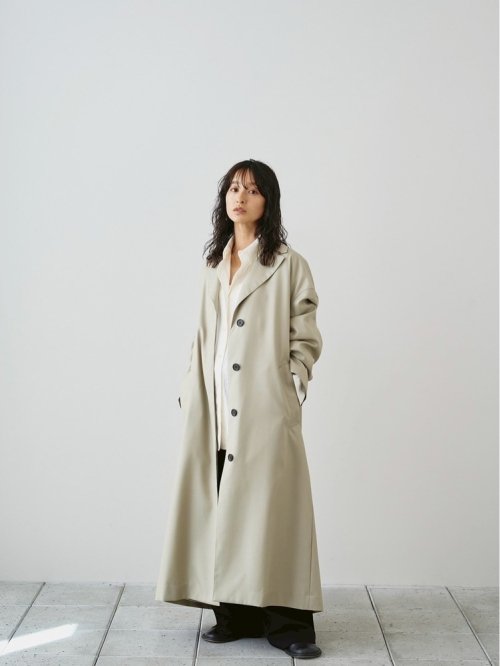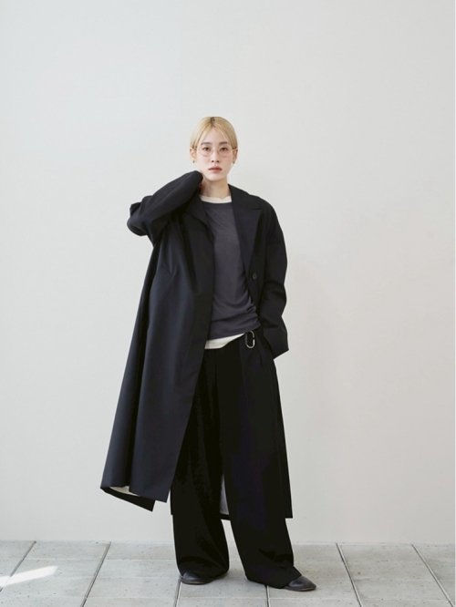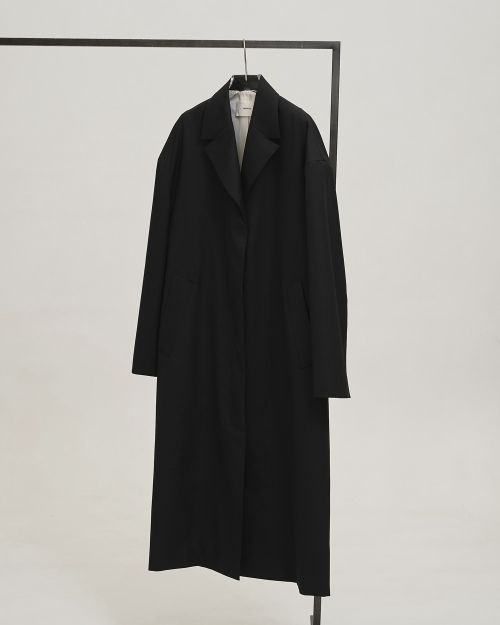 国内の上質なウール100%生地を使用したコート。細番手のウールを強く撚ることで生まれるしなやかさと、表情のあるシャンブレーカラーが魅力です。オーバーショルダーのシルエットに、コンパクトな襟を組み合わせてバランスよく仕上げました。羽織るだけでスタイリングを引き締め、幅広いシーンで活躍する一枚です。