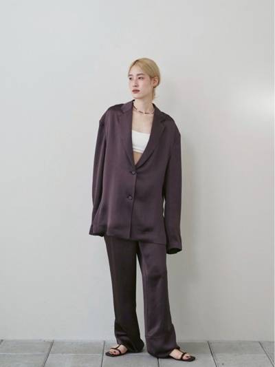 国内の上質なサテン生地を使用したジャケット。シャツのように軽やかでリラックス感のある着心地が魅力。シンプルなデザインはインナーを選ばず、デイリーからオケージョンまで幅広いシーンで活躍します。新色のダークブラウンが加わり、同じ生地を使用したSatin Easy Pants と合わせたセットアップスタイルもおすすめです。