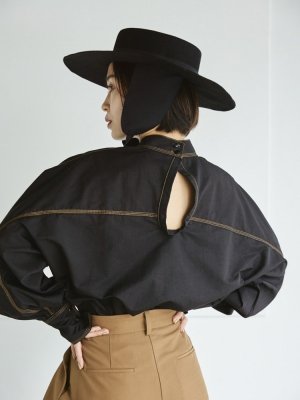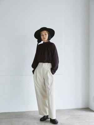 日本製のブリムハットは、ひとつひとつ手作業で型に入れて形成しています。取り外せる耳当てがスタイリングのポイントになってくれます。耳にあたる側にはメルトンウールを使用しているので暖かいのも魅力のひとつ。