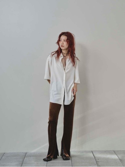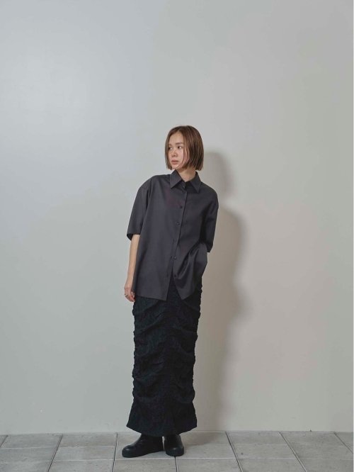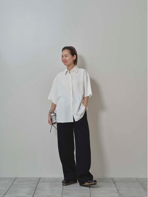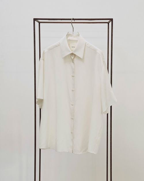 シルク100%のシャツ生地を使用したハーフスリーブシャツ。風合いをより良くするために特殊な加工を施し、素材の良さを最大限に活かしたミニマルなデザインが魅力。シンプルなボトムスに合わせるだけでも上品で抜け感のある印象に。