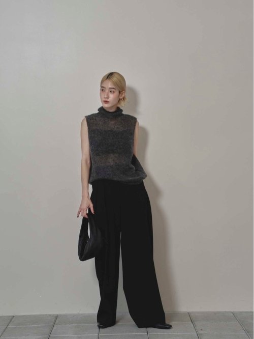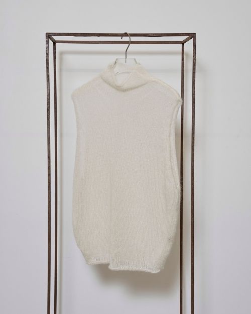 モヘア混の糸を使用して編まれたニットベスト。ゆるっとしたシルエットと程良い透け感が女性らしく、シンプルなボトムスに合わせるだけでシーズンムードたっぷりな一枚。同じ糸を使用して編んだWoolmohair Wrap Skirtとセットアップで着るのもおすすめです。