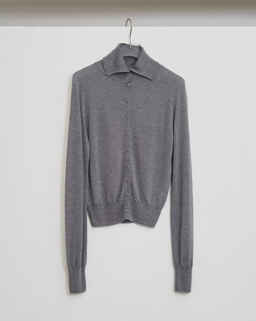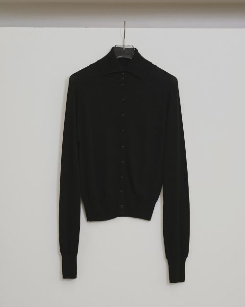 上質なテンセルウール糸を使用したニット。折り返したネックラインとフロントの小さなボタンがアクセントになり、シンプルながら表情のある一枚。体に沿いすぎないコンパクトなシルエットで、ジャケットのインナーにもすっきり収まり、デイリーに活躍します。