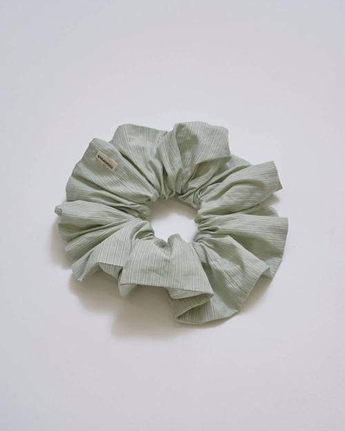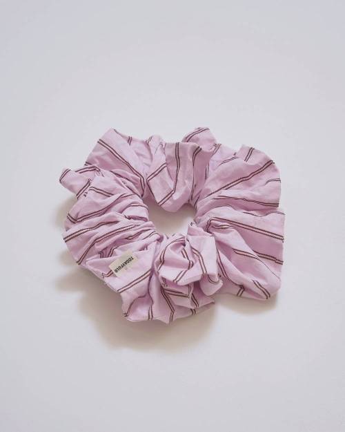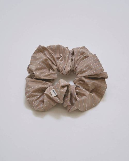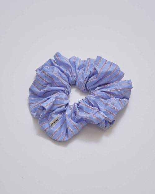 コットン100%の軽やかな生地を使用したシュシュ。カラーごとに異なるストライプピッチが魅力で、まとめ髪にプラスするだけでスタイリングのアクセントに。大ぶりなサイズ感は存在感があり、手首に通してアクセサリー感覚で取り入れるのもおすすめです。