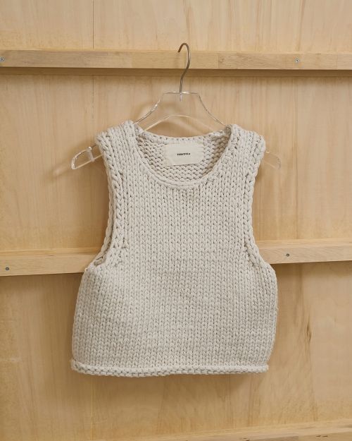 オリジナルで染め上げたコットン混糸を使用したニットベスト。ふっくらとした表情がナチュラルな雰囲気を添え、コンパクトなシルエットがどんなボトムともバランスよく馴染みます。シンプルなTシャツとのレイヤードで、程よくこなれたスタイルを楽しめます。