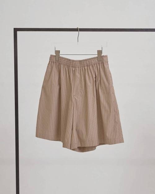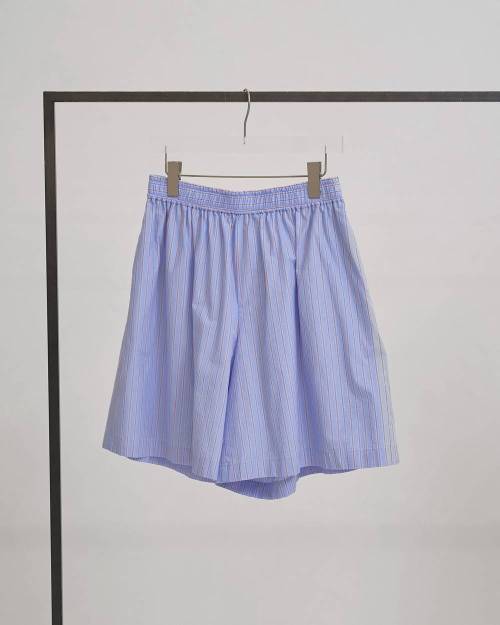 コットン100%の軽やかな生地を使用したハーフパンツ。カラーごとに異なるストライプピッチがスタイリングに表情を加えてくれます。膝下丈のバランスとリラックス感のあるシルエットで、ラフに穿くだけで抜け感のある雰囲気に。裏地付きで透け感を気にせず着用でき、ウエストはゴム仕様で穿き心地も快適です。同じ生地を使用したStripe Pocket Shirtsとのセットアップスタイルもおすすめです。