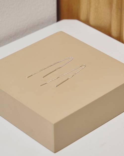 耳元で軽やかに揺れる繊細なチェーンが魅力のピアス。キャッチレスで、穴に通してお好みの長さに調整できるミニマルなデザイン。動きに合わせてさりげない輝きを放ち、華奢ながらもスタイリングに上品なアクセントを添えてくれます。デイリーからオケージョンまで幅広く活躍するアイテムです。