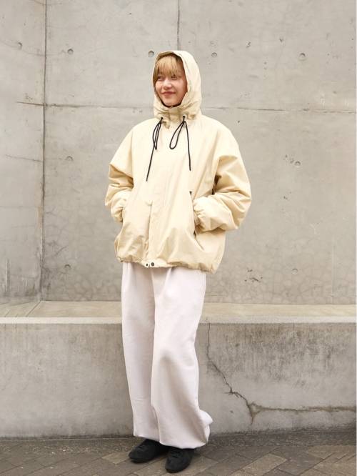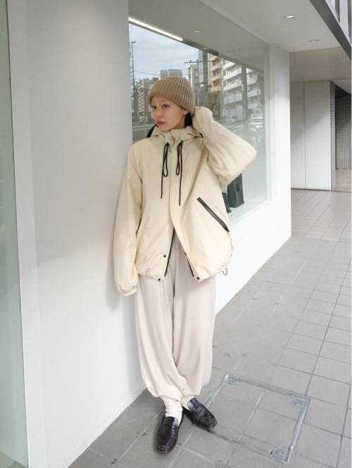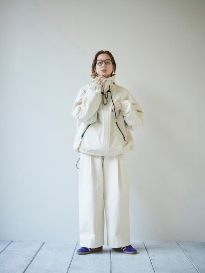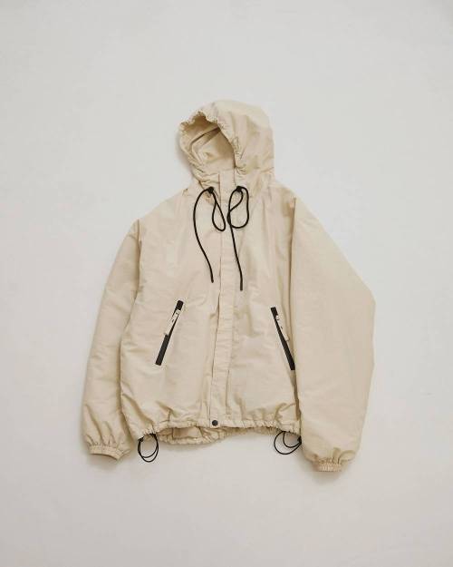 ほどよく張りがあり、マットな生地を使用したフーディージャケット。とても軽く、ラフに羽織っていただけます。風を通しにくく防寒性にも優れています。ビーニーやスニーカーなどのカジュアルなアイテムと合わせてマニッシュに着るのはもちろん、あえてワンピースやヒールブーツを合わせて女性らしさをプラスするスタイルもおすすめ。デイリーにもレジャーや旅行にも活躍する一着。ECRUのファスナーやスピンドルは配色です。