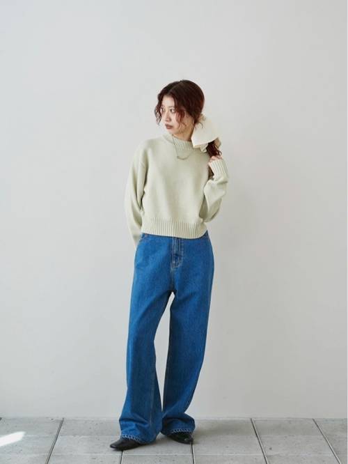 ストレートラインで全体的にゆるっとしたルーズ感のあるシルエットが魅力のデニム。腰履きでマニッシュな雰囲気で履いていただくのがおすすめな一枚。生地端を贅沢に使用しているため、裾を折り返しても履いていただけるように少し長めの着丈にしています。